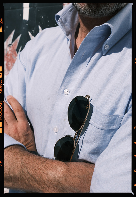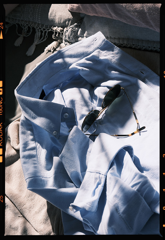 Jak wiecie, Oxford jest dość grubym i ściśle tkanym materiałem. Nie ma przewiewności lnu, który byłby zapewne lepszym wyborem na lipiec czy sierpień. To jednak koszula, która w cieplejsze dni w zupełności wystarczyła jako jedyna warstwa, a wieczorami wystarczyło narzucić na nią workwearową kurtkę z grubej bawełny. W upalne i słoneczne dni wysoki kołnierzyk na guziczki chronił kark przed słońcem, a długie rękawy – ramiona.