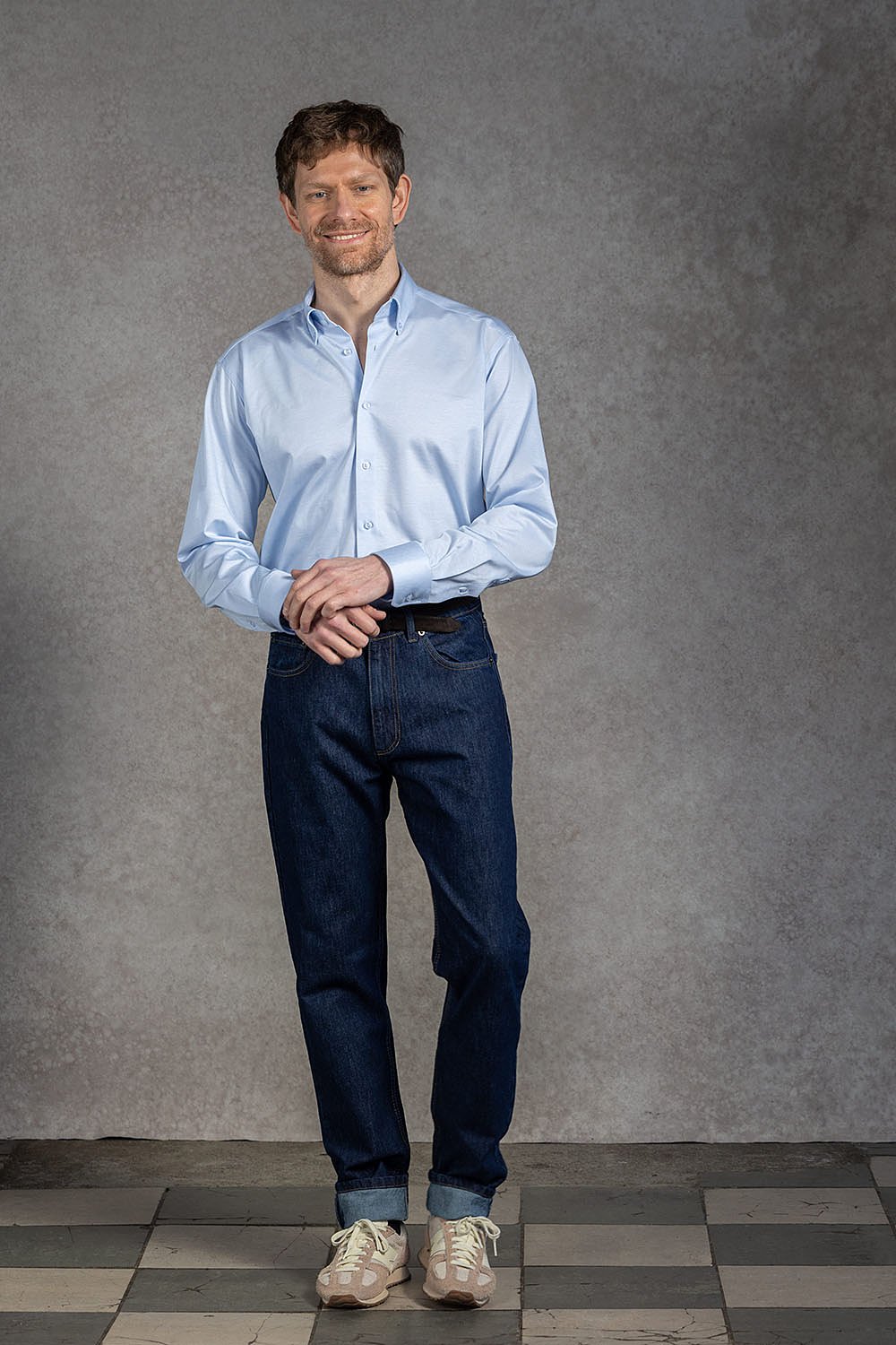 Kołnierzyk button-down nadaje całości sportowej elegancji i utrzymuje kołnierz na miejscu, dzięki czemu koszula wygląda schludnie nawet bez krawata. Jasny błękitny kolor podkreśla jej świeży, uniwersalny charakter i łatwo łączy się zarówno z chinosami, jak i jeansami.