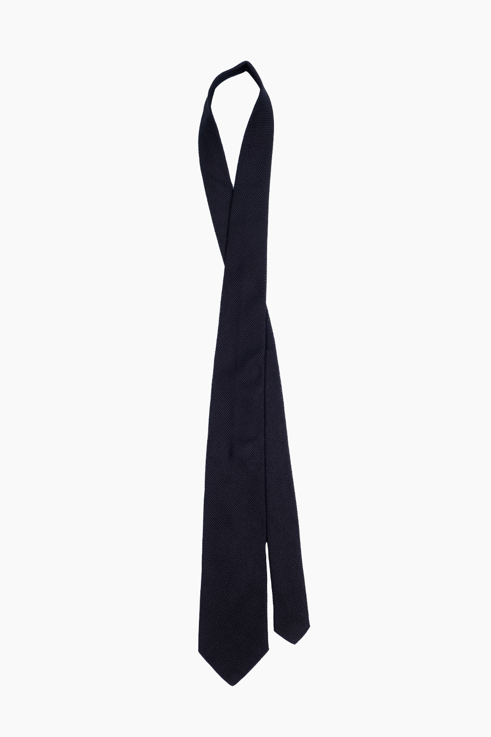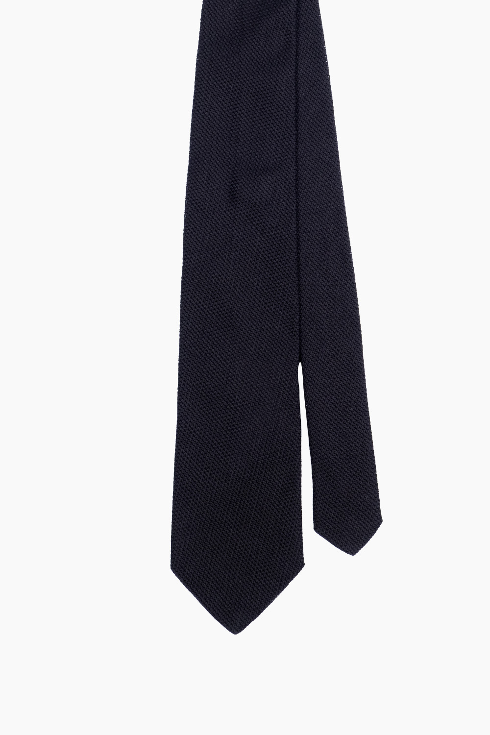 Czarny krawat z grenadyny fina o szerokości 8,5 cm.