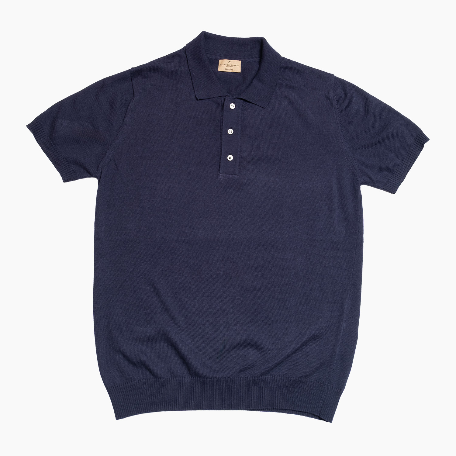 Granatowe polo z dzianiny. Wykonane z wysokiej jakości czesankowej bawełny o długich włóknach, od włoskiego producenta Marchi & Fildi. Dzianina świetna w chwycie, lekka i przewiewna. Zapewnia wysoki komfort użytkowania oraz dopasowania dzięki specjalnym szwom w ramionach. Wzmacniany kołnierz i plisa na trzy cieniowane guziki wykonane z masy perłowej. Wyprodukowane w Polsce w małej manufakturze.