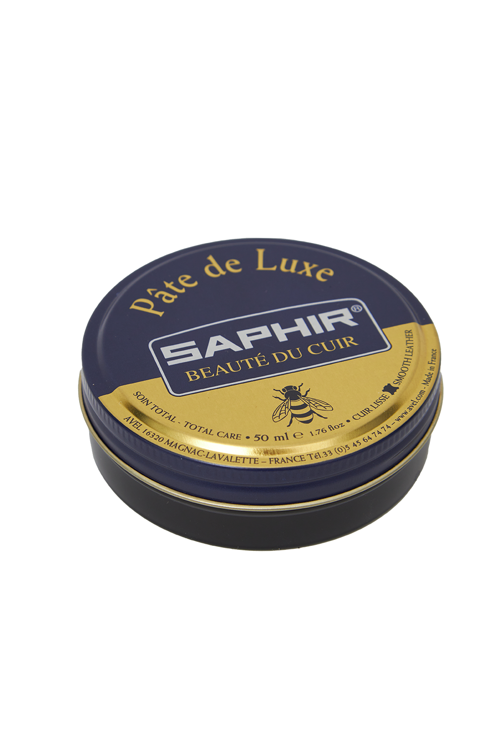 Pasta do obuwia Saphir BDC Pate de Luxe zawiera w swoim składzie wosk pszczeli, który odżywia i zmiękcza skórę. Wykorzystane w procesie produkcji woski mineralne odpowiedzialne są za zwiększenie odporności skór, zaś głównym zadaniem wosków roślinnych jest zapewnienie imponującego i trwałego połysku. Największy wpływ na ten spektakularny efekt ma przede wszystkim wosk Carnauba (najtwardszy) pozyskiwany z liści kopernicji – palmy rosnącej w Brazylii. Terpentyna pozyskiwana z żywicy drzew iglastych ułatwia skuteczną o wydajną aplikację pasty.
