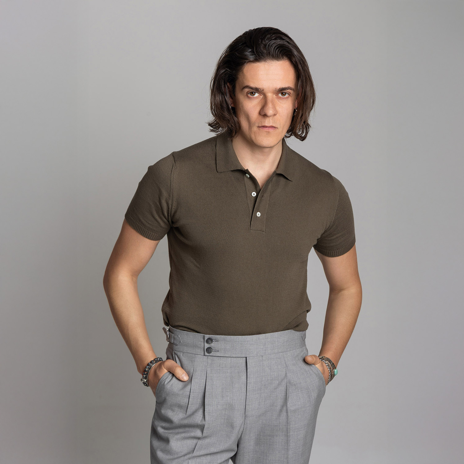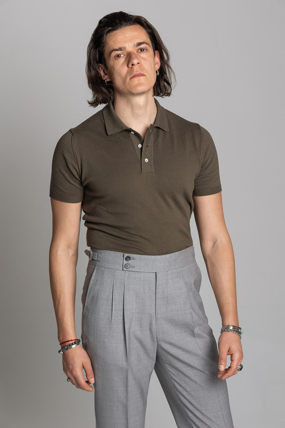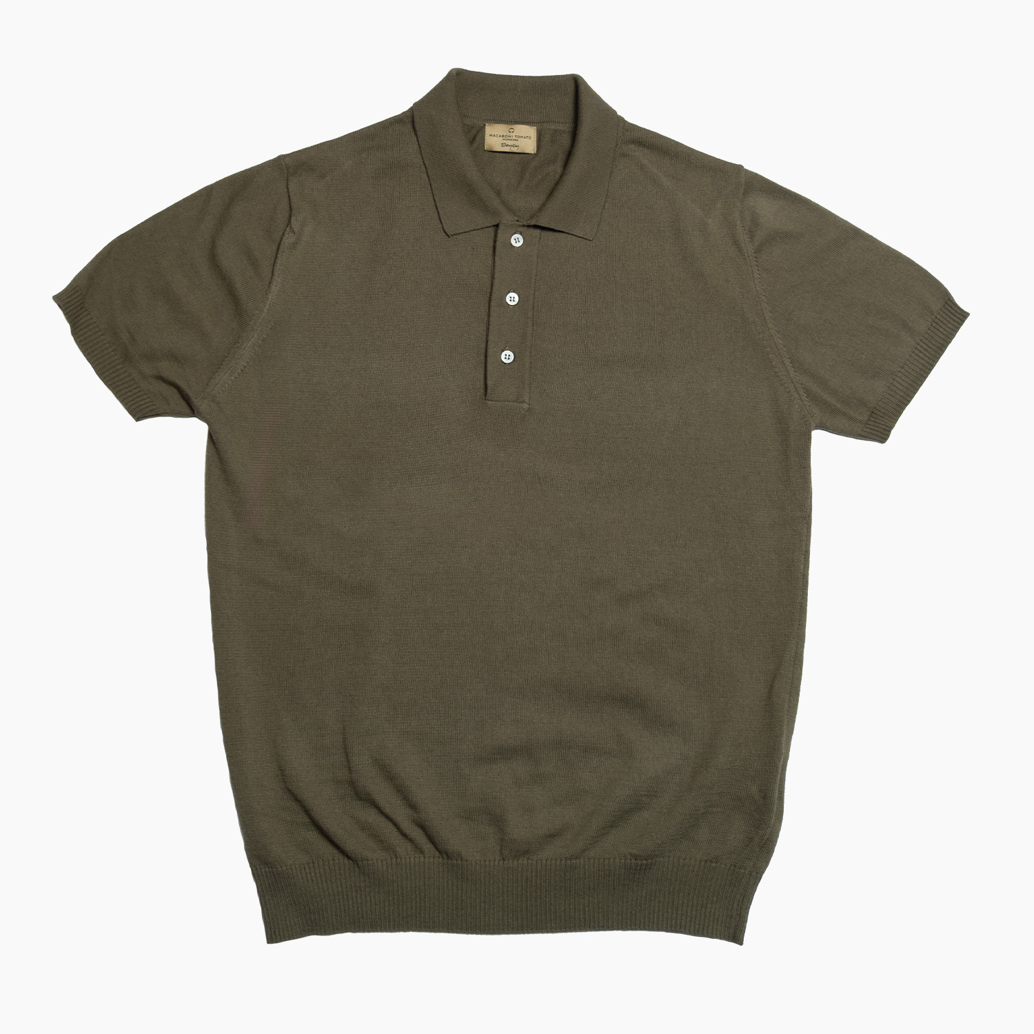 Zielone polo z dzianiny. Wykonane z wysokiej jakości czesankowej bawełny o długich włóknach, od włoskiego producenta Marchi & Fildi. Dzianina świetna w chwycie, lekka i przewiewna. Zapewnia wysoki komfort użytkowania oraz dopasowania dzięki specjalnym szwom w ramionach. Wzmacniany kołnierz i plisa na trzy cieniowane guziki wykonane z masy perłowej. Wyprodukowane w Polsce w małej manufakturze.