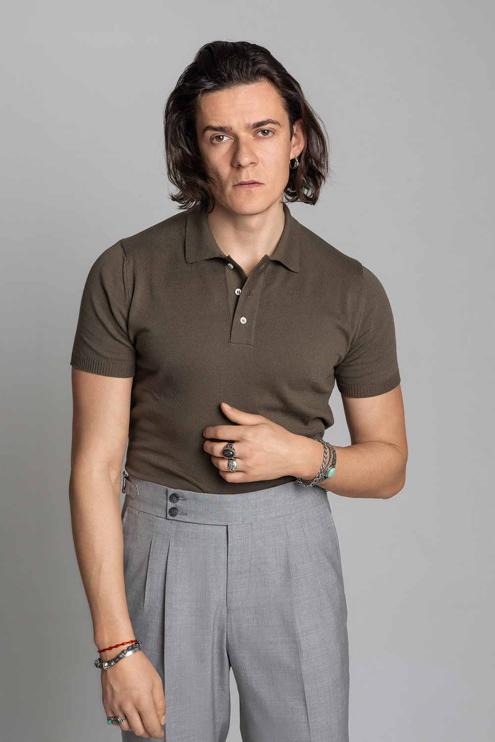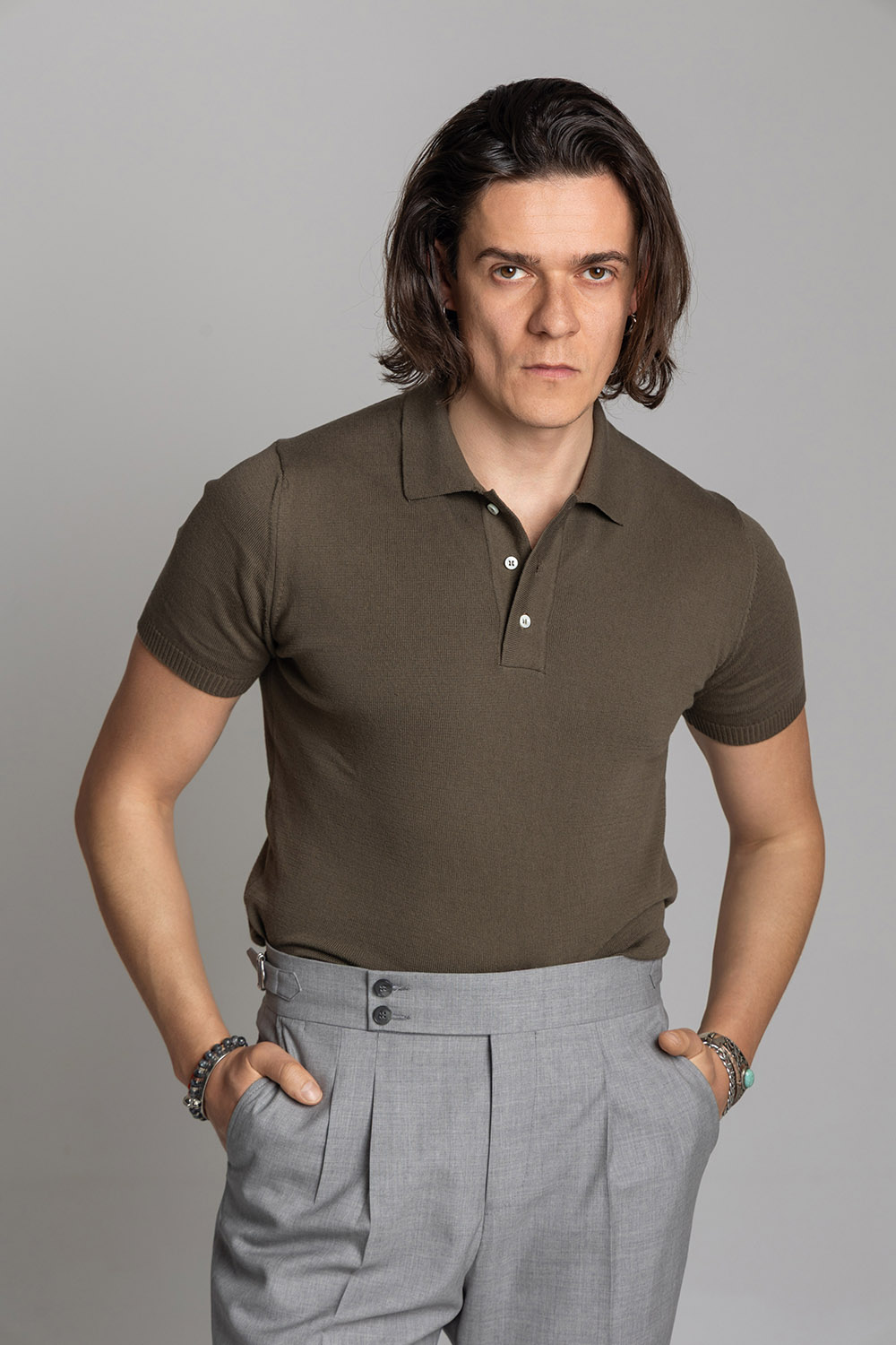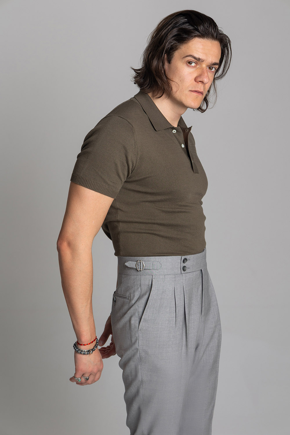 Zielone polo z dzianiny. Wykonane z wysokiej jakości czesankowej bawełny o długich włóknach, od włoskiego producenta Marchi & Fildi. Dzianina świetna w chwycie, lekka i przewiewna. Zapewnia wysoki komfort użytkowania oraz dopasowania dzięki specjalnym szwom w ramionach. Wzmacniany kołnierz i plisa na trzy cieniowane guziki wykonane z masy perłowej. Wyprodukowane w Polsce w małej manufakturze.